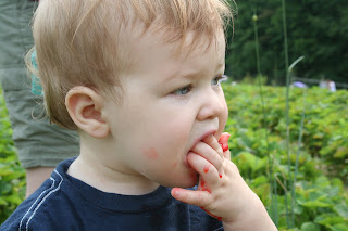 Yesterday we headed out to a Pick Your Own (also called UPick or PYO for those toddlers who want to be "in the know" like I am) farm and picked strawberries. Well, everyone else picked- I preferred to eat. And get covered in strawberry juice. Delicious! I think I ate about a pound right out there in the field. Last night we made strawberry ice cream, and Mama is going to make some strawberry jam. I liked the strawberries but I have to say that I am even more excited about the upcoming ripening of the blueberries (or "luluees" as I like to say...) [JUMP TO FULL POST]